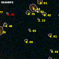 Object #145 x,y = (2685, 3339) RA, Dec = (00:32:10.488, 18:08:43.08) = (8.04370, 18.14530) BPZ = 3.655 [0.175--4.313] type = 9.40 (SB2_B10 - SB3_B10) chisq2 = 0.09 ODDS = 0.25 z_cluster = 0.396
