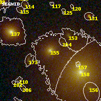 Object #155 x,y = (2294, 3283) RA, Dec = (00:32:12.120, 18:08:39.84) = (8.05050, 18.14440) BPZ = 0.461 [0.381--0.497] type = 4.20 (Ell4_A_0 - ES0_B10) chisq2 = 0.01 ODDS = 0.92 z_cluster = 0.396