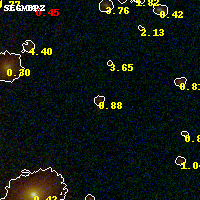 Object #162 x,y = (2674, 3301) RA, Dec = (00:32:10.512, 18:08:40.92) = (8.04380, 18.14470) BPZ = 0.881 [0.173--1.117] type = 8.70 (SB2_B10 - SB1_B10) chisq2 = 0.33 ODDS = 0.25 z_cluster = 0.396