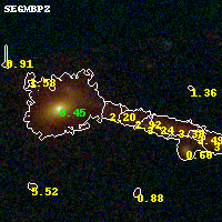 Object #18 x,y = (2581, 3550) RA, Dec = (00:32:10.920, 18:08:56.04) = (8.04550, 18.14890) BPZ = 2.197 [1.686--2.603] type = 7.40 (Scd_B10 - SB1_B10) chisq2 = 0.15 ODDS = 0.36 z_cluster = 0.396