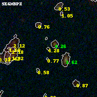 Object #180 x,y = (1772, 3319) RA, Dec = (00:32:14.328, 18:08:42.00) = (8.05970, 18.14500) BPZ = 4.284 [0.249--4.862] type = 10.00 (SB3_B10) chisq2 = 0.36 ODDS = 0.31 z_cluster = 0.396