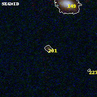 Object #201 x,y = (1383, 3220) RA, Dec = (00:32:15.960, 18:08:35.88) = (8.06650, 18.14330) BPZ = 0.528 [0.215--0.722] type = 9.10 (SB2_B10 - SB3_B10) chisq2 = 0.20 ODDS = 0.50 z_cluster = 0.396