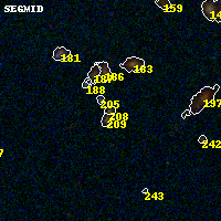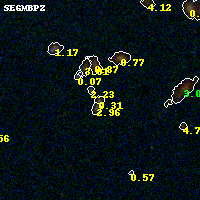 Object #208 x,y = (1580, 3208) RA, Dec = (00:32:15.120, 18:08:35.16) = (8.06300, 18.14310) BPZ = 0.310 [0.167--3.511] type = 8.60 (SB2_B10 - SB1_B10) chisq2 = 0.56 ODDS = 0.19 z_cluster = 0.396
