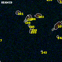 Object #209 x,y = (1578, 3201) RA, Dec = (00:32:15.144, 18:08:34.80) = (8.06310, 18.14300) BPZ = 2.964 [2.694--3.167] type = 9.30 (SB2_B10 - SB3_B10) chisq2 = 0.25 ODDS = 0.83 z_cluster = 0.396