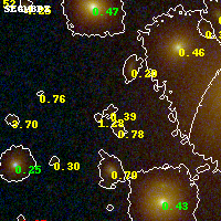 Object #210 x,y = (2232, 3225) RA, Dec = (00:32:12.384, 18:08:36.24) = (8.05160, 18.14340) BPZ = 0.394 [0.183--4.070] type = 7.20 (Scd_B10 - SB1_B10) chisq2 = 0.73 ODDS = 0.12 z_cluster = 0.396
