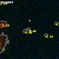 Object #232 x,y = (2854, 3148) RA, Dec = (00:32:09.768, 18:08:31.56) = (8.04070, 18.14210) BPZ = 3.402 [3.126--3.506] type = 11.00 (SB11_A_0_l) chisq2 = 0.57 ODDS = 0.87 z_cluster = 0.396