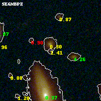Object #238 x,y = (1896, 3123) RA, Dec = (00:32:13.800, 18:08:30.12) = (8.05750, 18.14170) BPZ = 1.413 [1.154--2.491] type = 9.60 (SB3_B10 - SB2_B10) chisq2 = 0.41 ODDS = 0.14 z_cluster = 0.396