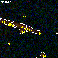Object #24 x,y = (2675, 3523) RA, Dec = (00:32:10.512, 18:08:54.24) = (8.04380, 18.14840) BPZ = 3.357 [3.274--3.840] type = 6.30 (Sbc_B10 - Scd_B10) chisq2 = 0.18 ODDS = 0.77 z_cluster = 0.396