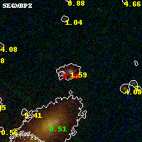 Object #245 x,y = (2763, 3167) RA, Dec = (00:32:10.152, 18:08:33.00) = (8.04230, 18.14250) BPZ = 1.593 [1.568--1.727] type = 8.10 (SB1_B10 - SB2_B10) chisq2 = 0.72 ODDS = 0.93 z_cluster = 0.396