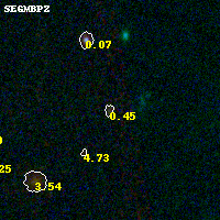 Object #263 x,y = (3461, 3082) RA, Dec = (00:32:07.224, 18:08:27.96) = (8.03010, 18.14110) BPZ = 0.448 [0.167--0.846] type = 9.80 (SB3_B10 - SB2_B10) chisq2 = 0.24 ODDS = 0.61 z_cluster = 0.396
