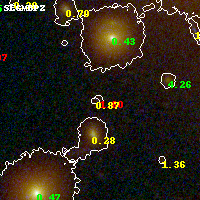 Object #264 x,y = (2267, 3081) RA, Dec = (00:32:12.240, 18:08:27.60) = (8.05100, 18.14100) BPZ = 1.597 [0.175--3.513] type = 9.90 (SB3_B10 - SB2_B10) chisq2 = 1.14 ODDS = 0.25 z_cluster = 0.396