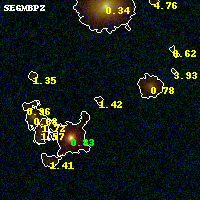 Object #274 x,y = (3144, 3064) RA, Dec = (00:32:08.544, 18:08:26.52) = (8.03560, 18.14070) BPZ = 1.422 [0.827--2.823] type = 6.00 (Sbc_B10) chisq2 = 0.21 ODDS = 0.18 z_cluster = 0.396