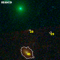 Object #28 x,y = (2315, 3566) RA, Dec = (00:32:12.048, 18:08:56.76) = (8.05020, 18.14910) BPZ = 0.929 [0.477--6.098] type = 6.20 (Sbc_B10 - Scd_B10) chisq2 = 0.36 ODDS = 0.11 z_cluster = 0.396