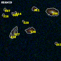 Object #330 x,y = (1505, 2959) RA, Dec = (00:32:15.456, 18:08:20.40) = (8.06440, 18.13900) BPZ = 0.774 [0.233--4.233] type = 7.70 (SB1_B10 - Scd_B10) chisq2 = 0.36 ODDS = 0.77 z_cluster = 0.396