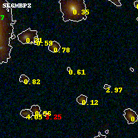 Object #338 x,y = (2003, 2955) RA, Dec = (00:32:13.344, 18:08:20.04) = (8.05560, 18.13890) BPZ = 0.611 [0.255--5.155] type = 8.70 (SB2_B10 - SB1_B10) chisq2 = 0.53 ODDS = 0.09 z_cluster = 0.396