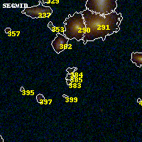 Object #384 x,y = (1677, 2859) RA, Dec = (00:32:14.712, 18:08:14.28) = (8.06130, 18.13730) BPZ = 0.594 [0.134--1.022] type = 9.60 (SB3_B10 - SB2_B10) chisq2 = 0.07 ODDS = 0.36 z_cluster = 0.396