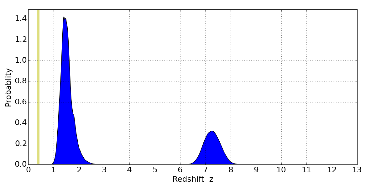 Best viewed in a wide browser window (1200 pixels or more). Download SED & P(z) plots to view larger versions.