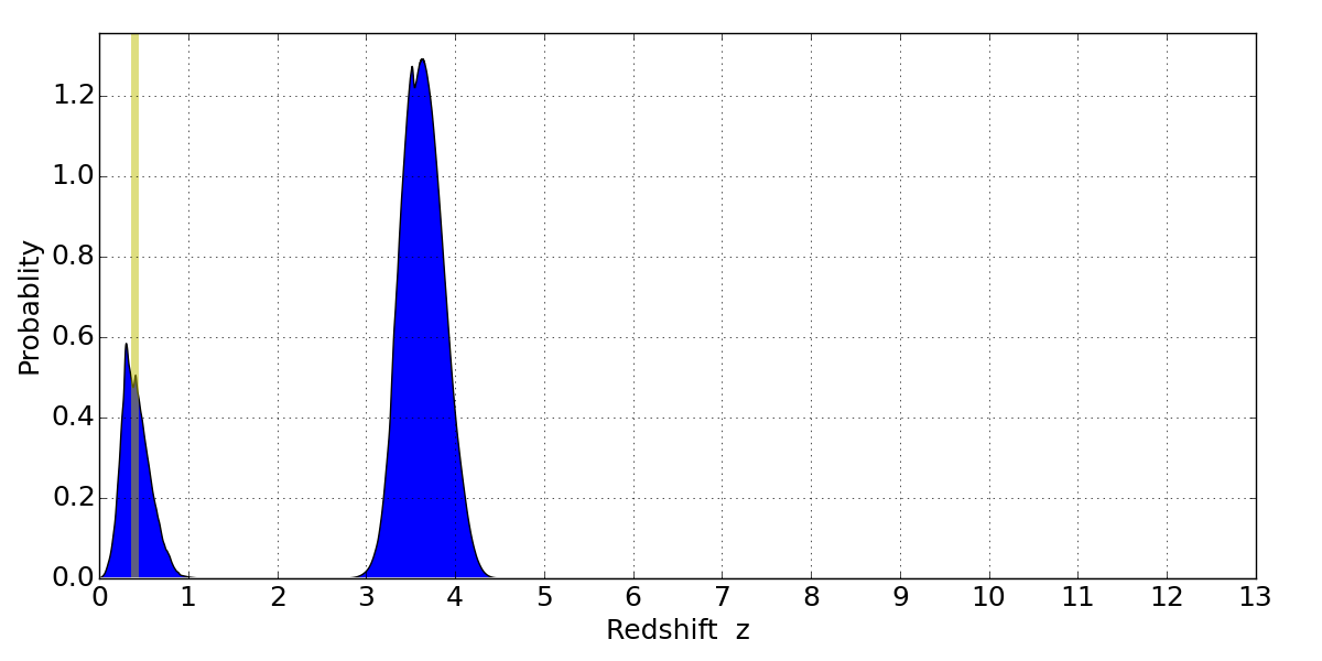 Best viewed in a wide browser window (1200 pixels or more). Download SED & P(z) plots to view larger versions.