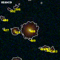 Object #408 x,y = (2094, 2778) RA, Dec = (00:32:12.960, 18:08:09.60) = (8.05400, 18.13600) BPZ = 0.332 [0.276--0.412] type = 4.50 (ES0_B10 - Ell4_A_0) chisq2 = 0.03 ODDS = 0.84 z_cluster = 0.396