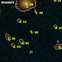 Object #41 x,y = (3096, 3518) RA, Dec = (00:32:08.760, 18:08:53.88) = (8.03650, 18.14830) BPZ = 4.999 [4.569--5.356] type = 10.40 (SB3_B10 - SB11_A_0_l) chisq2 = 0.25 ODDS = 0.74 z_cluster = 0.396