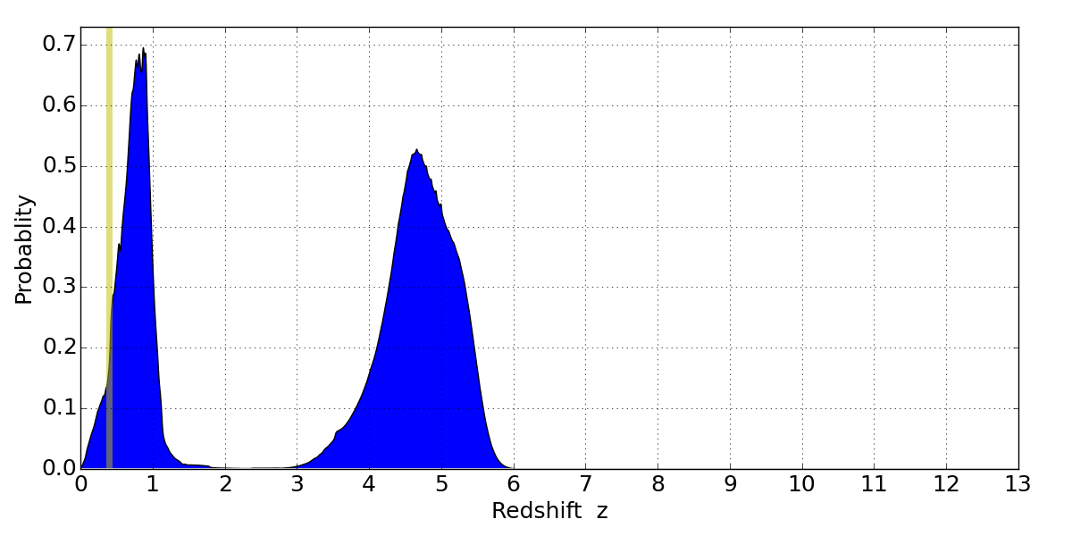 Best viewed in a wide browser window (1200 pixels or more). Download SED & P(z) plots to view larger versions.