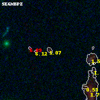 Object #428 x,y = (1486, 2778) RA, Dec = (00:32:15.528, 18:08:09.60) = (8.06470, 18.13600) BPZ = 1.075 [0.168--1.413] type = 8.50 (SB2_B10 - SB1_B10) chisq2 = 0.20 ODDS = 0.30 z_cluster = 0.396