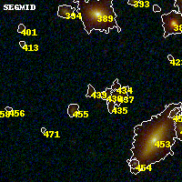 Object #439 x,y = (2372, 2749) RA, Dec = (00:32:11.808, 18:08:07.80) = (8.04920, 18.13550) BPZ = 4.442 [0.567--5.227] type = 8.60 (SB2_B10 - SB1_B10) chisq2 = 0.37 ODDS = 0.52 z_cluster = 0.396
