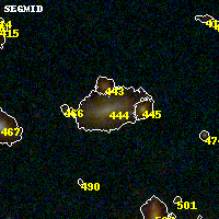 Object #444 x,y = (2975, 2716) RA, Dec = (00:32:09.264, 18:08:06.00) = (8.03860, 18.13500) BPZ = 0.261 [0.203--0.395] type = 8.50 (SB2_B10 - SB1_B10) chisq2 = 0.05 ODDS = 0.79 z_cluster = 0.396