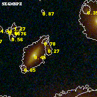 Object #451 x,y = (2470, 2708) RA, Dec = (00:32:11.376, 18:08:05.28) = (8.04740, 18.13480) BPZ = 0.269 [0.199--4.266] type = 4.00 (Ell4_A_0) chisq2 = 0.19 ODDS = 0.76 z_cluster = 0.396