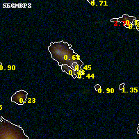 Object #477 x,y = (2063, 2647) RA, Dec = (00:32:13.104, 18:08:01.68) = (8.05460, 18.13380) BPZ = 0.427 [0.133--0.555] type = 9.60 (SB3_B10 - SB2_B10) chisq2 = 0.39 ODDS = 0.33 z_cluster = 0.396