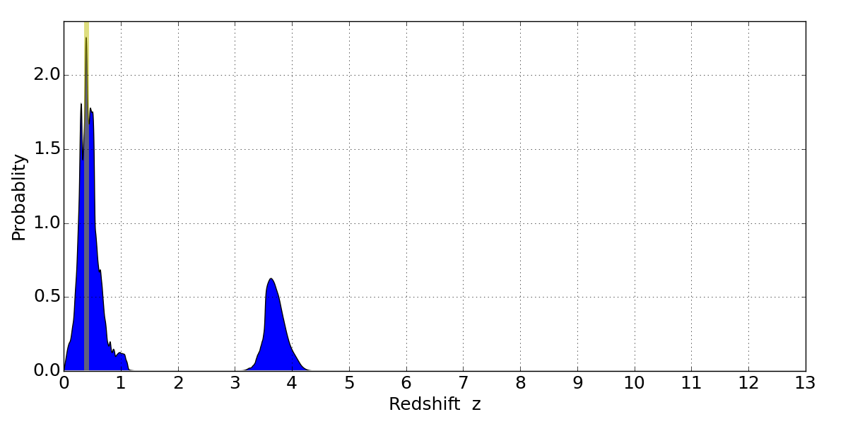 Best viewed in a wide browser window (1200 pixels or more). Download SED & P(z) plots to view larger versions.