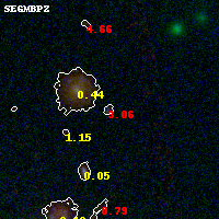 Object #491 x,y = (3507, 2648) RA, Dec = (00:32:07.008, 18:08:01.68) = (8.02920, 18.13380) BPZ = 3.061 [0.142--3.311] type = 10.10 (SB3_B10 - SB11_A_0_l) chisq2 = 1.51 ODDS = 0.55 z_cluster = 0.396