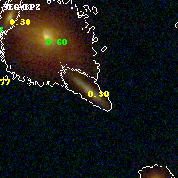 Object #493 x,y = (1754, 2539) RA, Dec = (00:32:14.400, 18:07:55.20) = (8.06000, 18.13200) BPZ = 0.304 [0.276--0.442] type = 7.60 (SB1_B10 - Scd_B10) chisq2 = 0.17 ODDS = 0.75 z_cluster = 0.396
