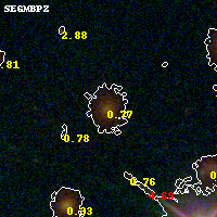 Object #497 x,y = (3368, 2607) RA, Dec = (00:32:07.608, 18:07:59.16) = (8.03170, 18.13310) BPZ = 0.774 [0.693--0.874] type = 7.30 (Scd_B10 - SB1_B10) chisq2 = 0.06 ODDS = 0.89 z_cluster = 0.396