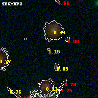 Object #499 x,y = (3468, 2627) RA, Dec = (00:32:07.176, 18:08:00.60) = (8.02990, 18.13350) BPZ = 1.151 [0.409--3.316] type = 10.40 (SB3_B10 - SB11_A_0_l) chisq2 = 0.78 ODDS = 0.12 z_cluster = 0.396