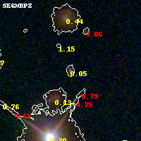 Object #514 x,y = (3485, 2592) RA, Dec = (00:32:07.104, 18:07:58.44) = (8.02960, 18.13290) BPZ = 0.051 [0.014--0.281] type = 8.50 (SB2_B10 - SB1_B10) chisq2 = 0.19 ODDS = 0.88 z_cluster = 0.396