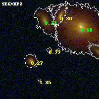 Object #533 x,y = (1643, 2552) RA, Dec = (00:32:14.856, 18:07:55.92) = (8.06190, 18.13220) BPZ = 0.772 [0.272--4.749] type = 7.80 (SB1_B10 - Scd_B10) chisq2 = 0.37 ODDS = 0.19 z_cluster = 0.396