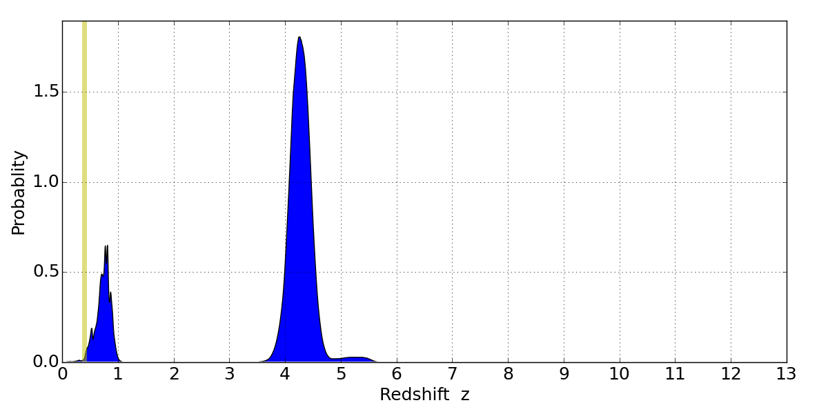 Best viewed in a wide browser window (1200 pixels or more). Download SED & P(z) plots to view larger versions.