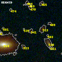 Object #541 x,y = (3127, 2625) RA, Dec = (00:32:08.616, 18:08:00.24) = (8.03590, 18.13340) BPZ = 0.478 [0.154--1.360] type = 7.50 (SB1_B10 - Scd_B10) chisq2 = 0.41 ODDS = 0.18 z_cluster = 0.396