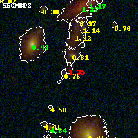 Object #563 x,y = (3106, 2408) RA, Dec = (00:32:08.712, 18:07:47.28) = (8.03630, 18.12980) BPZ = 1.350 [0.778--1.597] type = 9.60 (SB3_B10 - SB2_B10) chisq2 = 1.32 ODDS = 0.44 z_cluster = 0.396