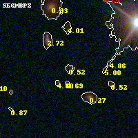 Object #616 x,y = (3356, 2429) RA, Dec = (00:32:07.656, 18:07:48.72) = (8.03190, 18.13020) BPZ = 0.524 [0.192--4.220] type = 9.20 (SB2_B10 - SB3_B10) chisq2 = 0.99 ODDS = 0.14 z_cluster = 0.396