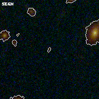 Object #627 x,y = (2960, 2409) RA, Dec = (00:32:09.312, 18:07:47.28) = (8.03880, 18.12980) BPZ = 1.279 [0.229--3.640] type = 9.40 (SB2_B10 - SB3_B10) chisq2 = 0.39 ODDS = 0.12 z_cluster = 0.396