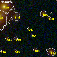 Object #643 x,y = (2818, 2386) RA, Dec = (00:32:09.912, 18:07:45.84) = (8.04130, 18.12940) BPZ = 0.429 [0.185--4.193] type = 8.40 (SB1_B10 - SB2_B10) chisq2 = 0.28 ODDS = 0.09 z_cluster = 0.396