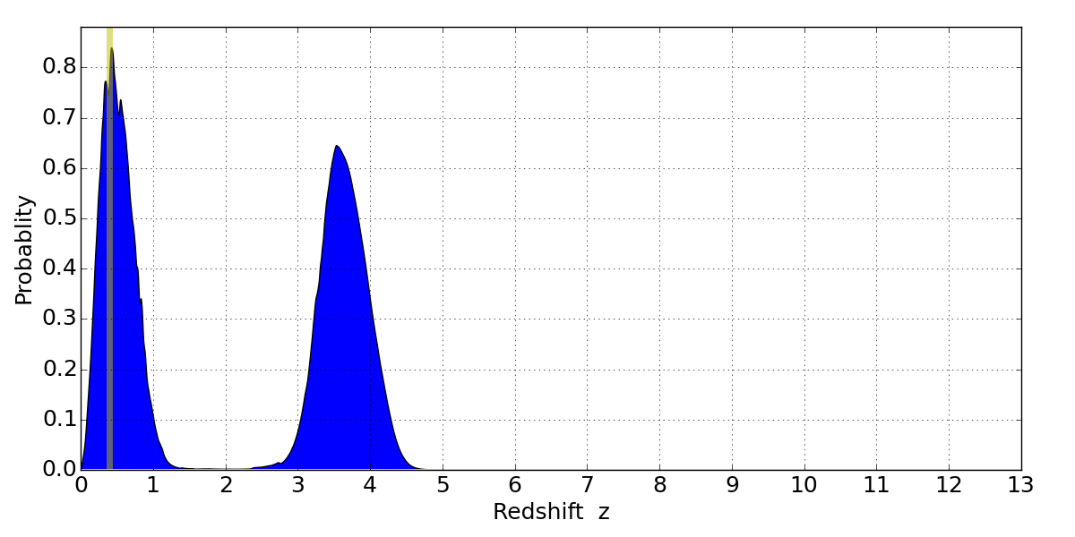 Best viewed in a wide browser window (1200 pixels or more). Download SED & P(z) plots to view larger versions.