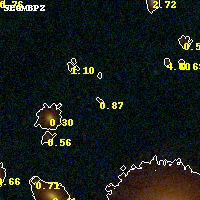 Object #648 x,y = (3272, 2370) RA, Dec = (00:32:08.016, 18:07:45.12) = (8.03340, 18.12920) BPZ = 0.868 [0.237--5.044] type = 8.90 (SB2_B10 - SB1_B10) chisq2 = 0.53 ODDS = 0.10 z_cluster = 0.396