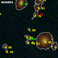 Object #667 x,y = (3079, 2353) RA, Dec = (00:32:08.832, 18:07:44.04) = (8.03680, 18.12890) BPZ = 4.496 [4.111--4.897] type = 10.70 (SB11_A_0_l - SB3_B10) chisq2 = 0.07 ODDS = 0.78 z_cluster = 0.396
