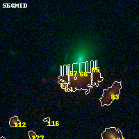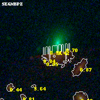 Object #67 x,y = (1511, 3450) RA, Dec = (00:32:15.432, 18:08:49.92) = (8.06430, 18.14720) BPZ = 0.910 [0.567--1.603] type = 7.30 (Scd_B10 - SB1_B10) chisq2 = 0.01 ODDS = 0.28 z_cluster = 0.396
