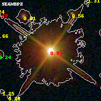 Object #671 x,y = (2079, 2262) RA, Dec = (00:32:13.032, 18:07:38.64) = (8.05430, 18.12740) BPZ = 0.974 [0.949--1.029] type = 5.60 (Sbc_B10 - ES0_B10) chisq2 = 1.40 ODDS = 1.00 z_cluster = 0.396