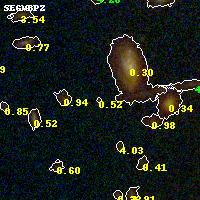 Object #694 x,y = (2426, 2302) RA, Dec = (00:32:11.568, 18:07:40.80) = (8.04820, 18.12800) BPZ = 0.521 [0.201--4.891] type = 9.90 (SB3_B10 - SB2_B10) chisq2 = 0.43 ODDS = 0.14 z_cluster = 0.396