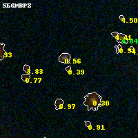 Object #707 x,y = (3002, 2278) RA, Dec = (00:32:09.144, 18:07:39.36) = (8.03810, 18.12760) BPZ = 0.394 [0.159--4.092] type = 8.00 (SB1_B10) chisq2 = 0.79 ODDS = 0.14 z_cluster = 0.396